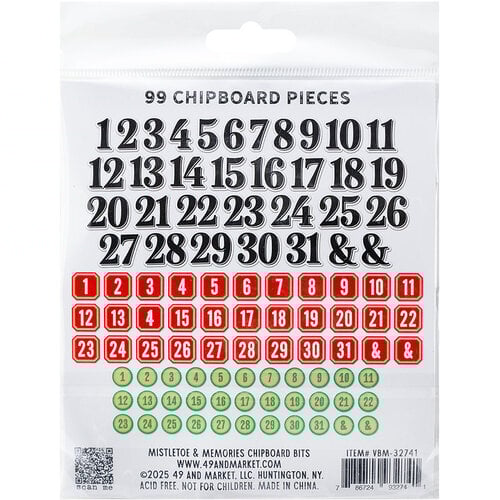 49 and Market - Mistletoe and Memories Collection - Chipboard Bits 99 pieces