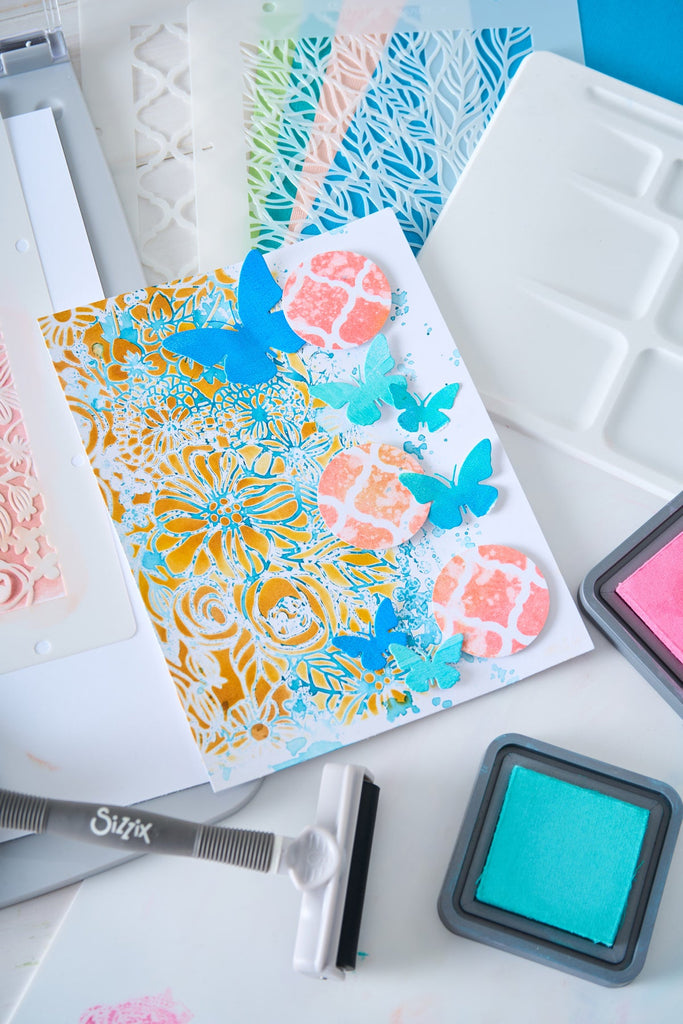 When used with the Stencil & Stamp Tool, each stencil is held firmly in place, making it simple to play, blend, and explore your creativity.